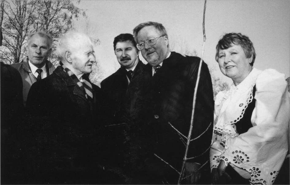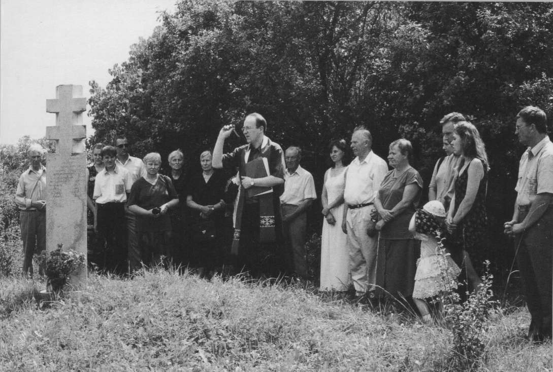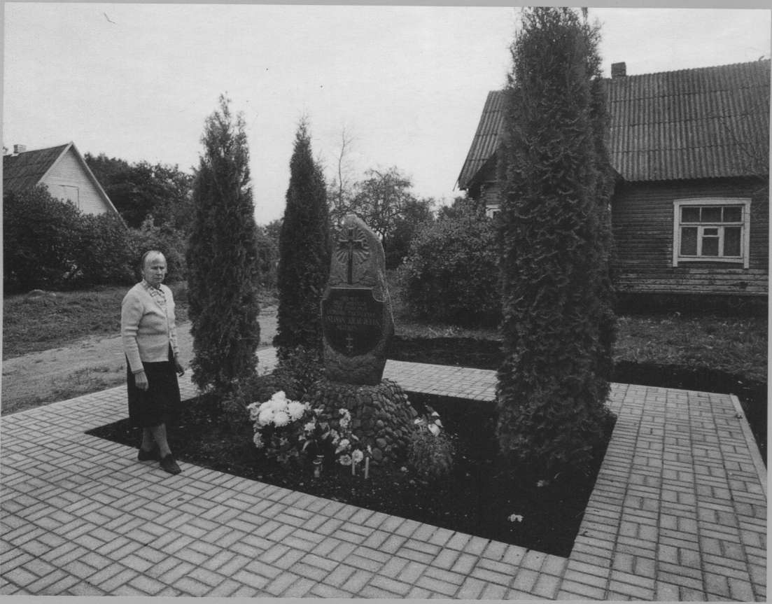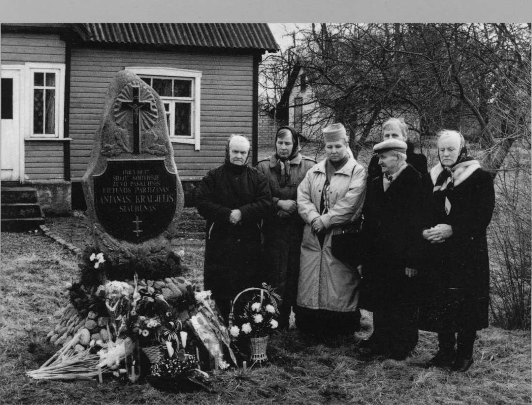 Antano Kraujalio artimieji prie ženklo partizanams atminti. Kaniūkai, 2001 07 07