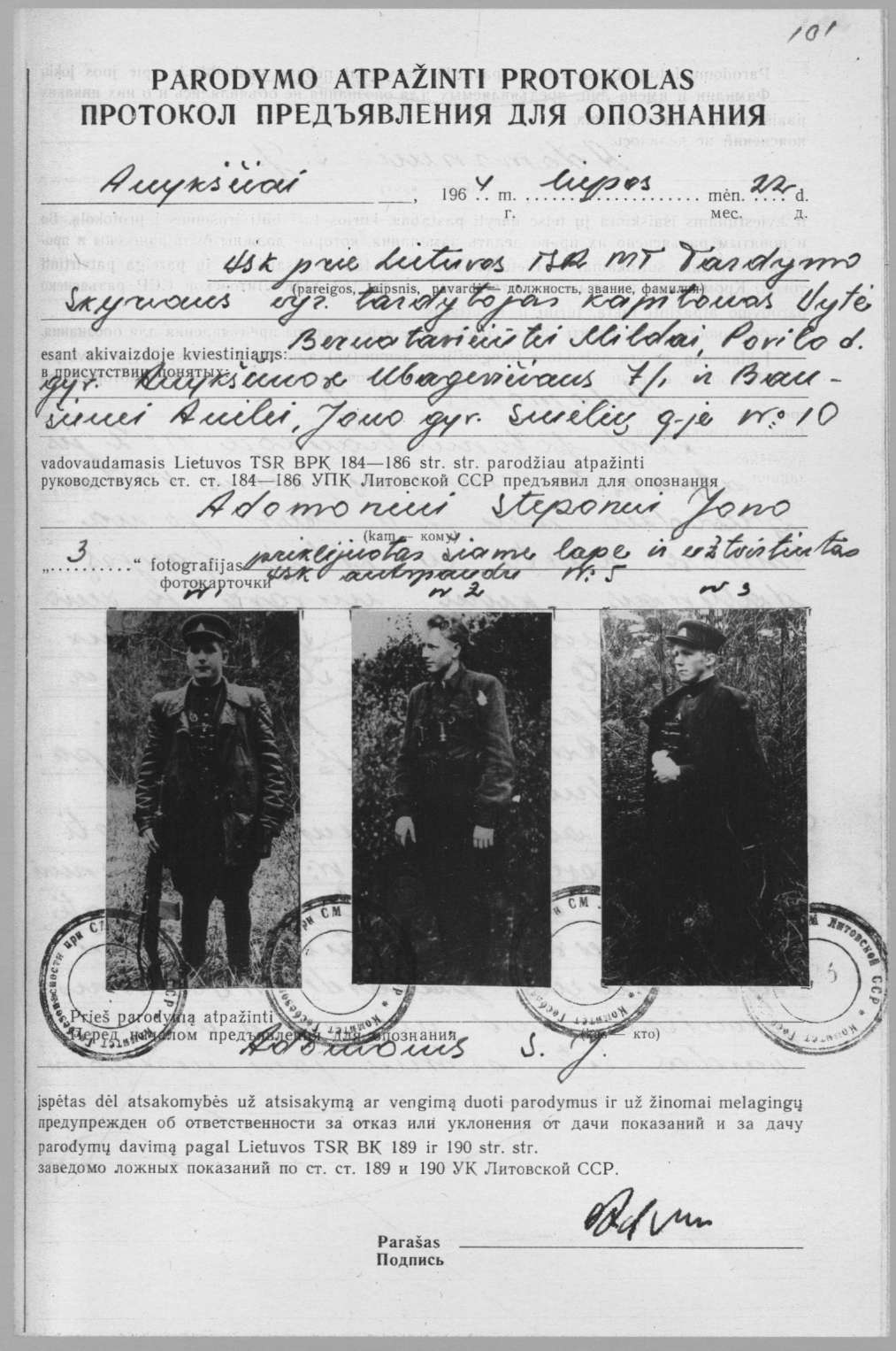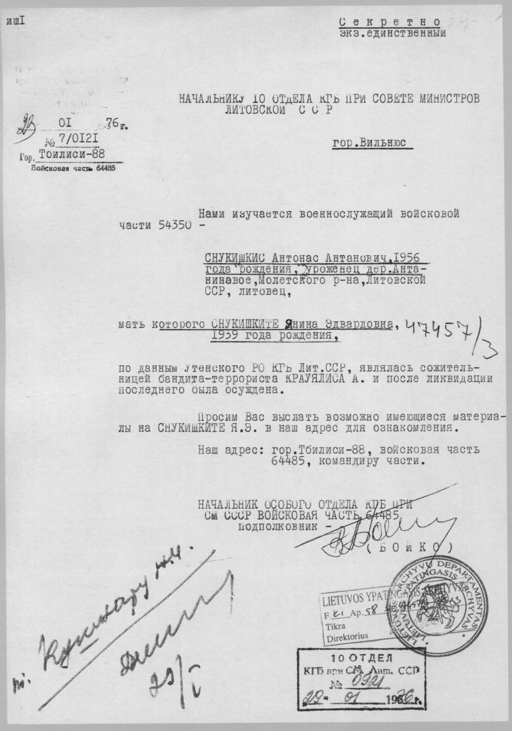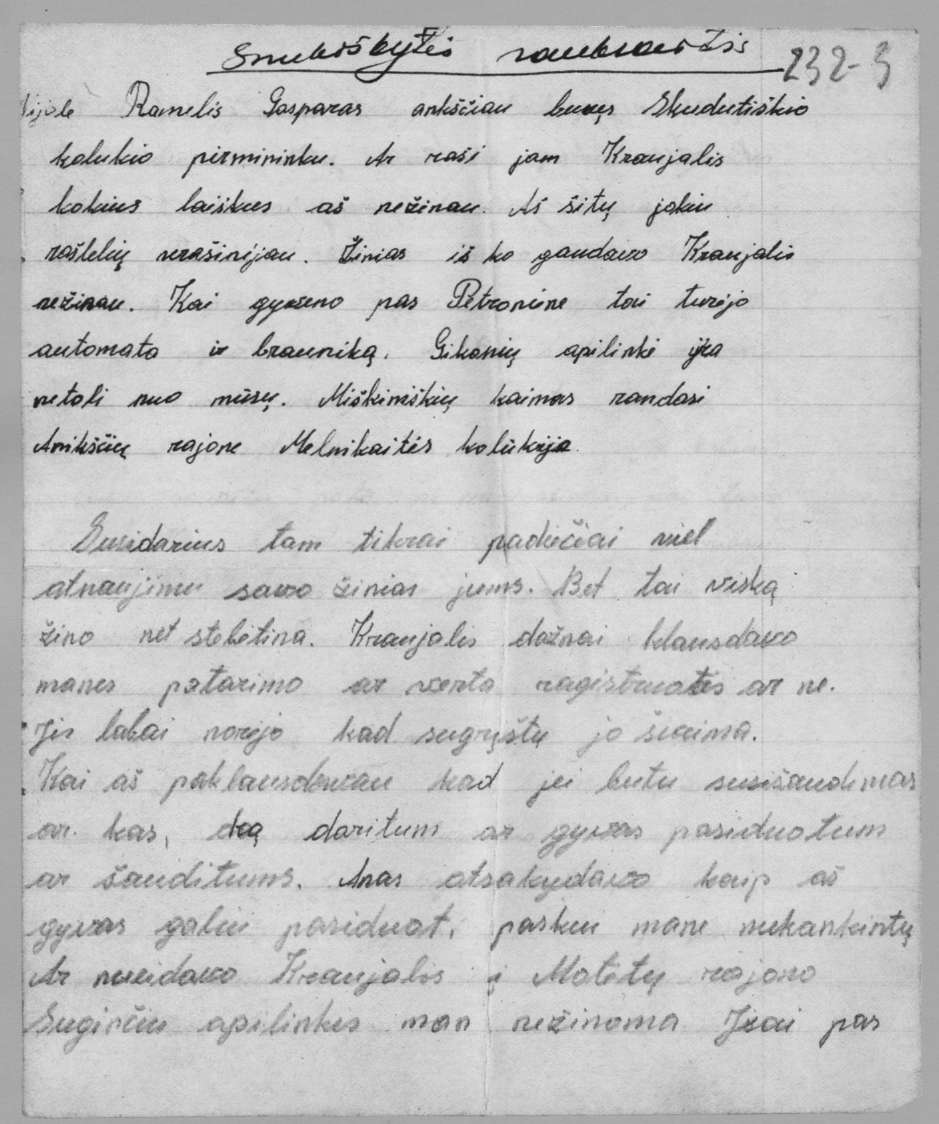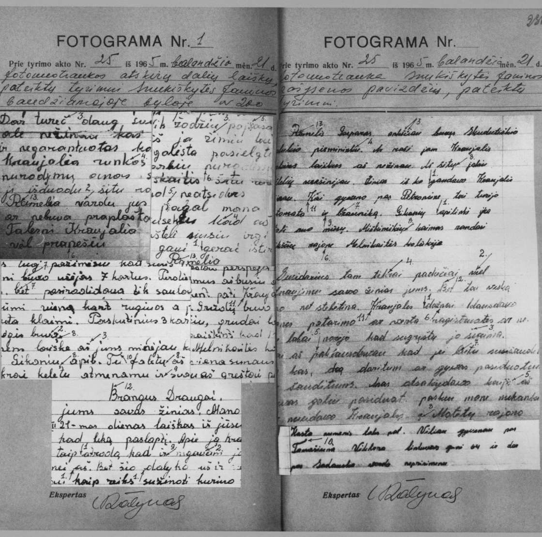 Antano Kraujelio ir Janinos Snukiškytės bylose esančių įdomesnių dokumentų kopijos