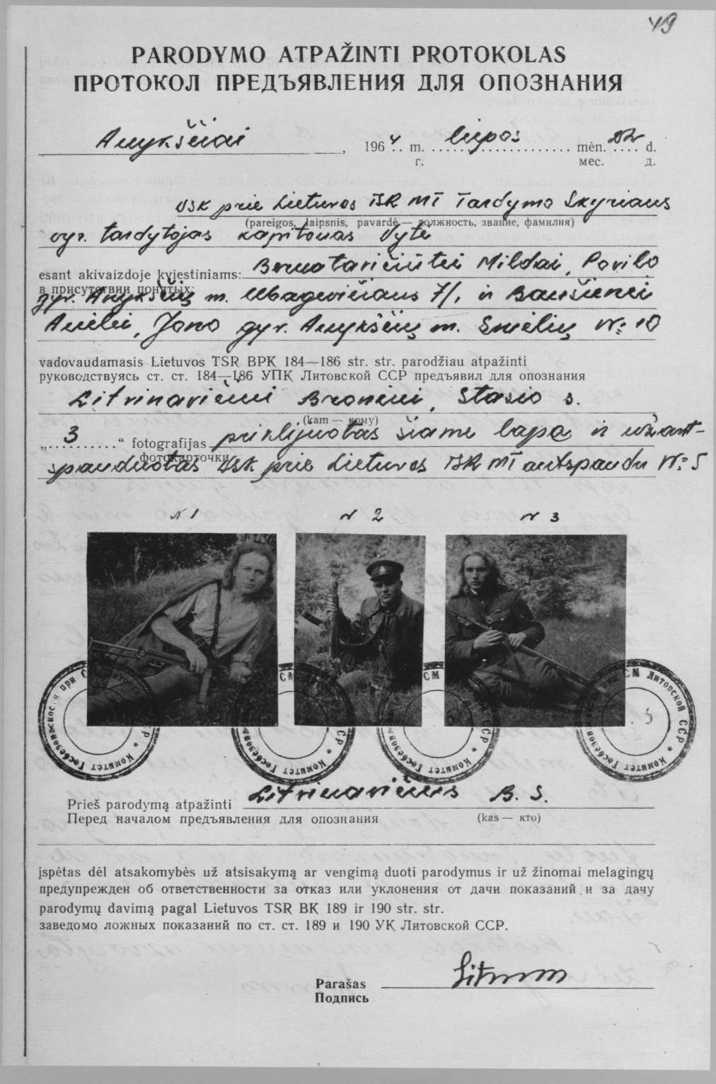 Kviestinio Broniaus Litvinavičiaus parodymai. 1964 07 22