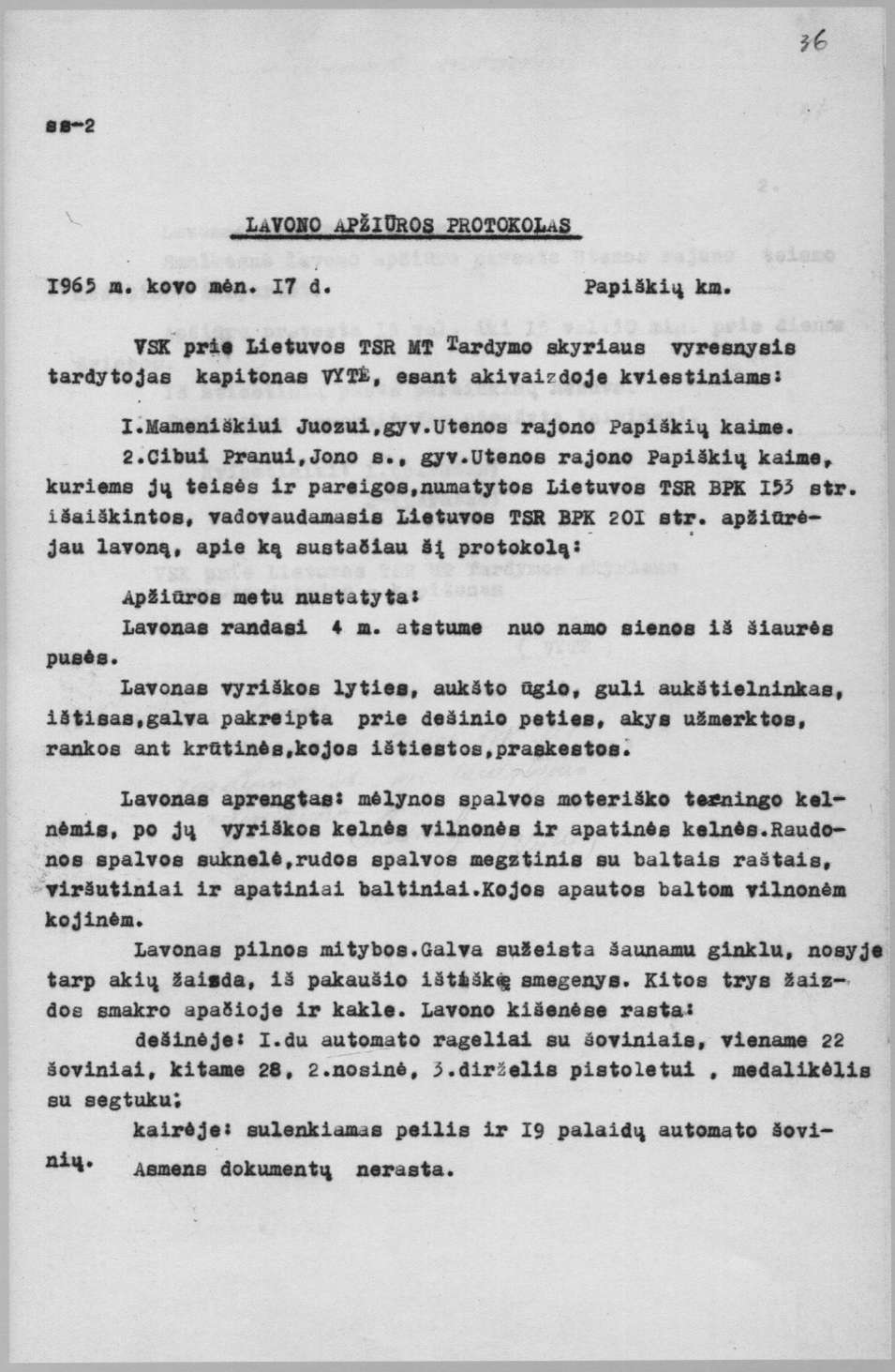 Įvykio vietos apžiūros protokolas. Papiškiai, 1965 03 19