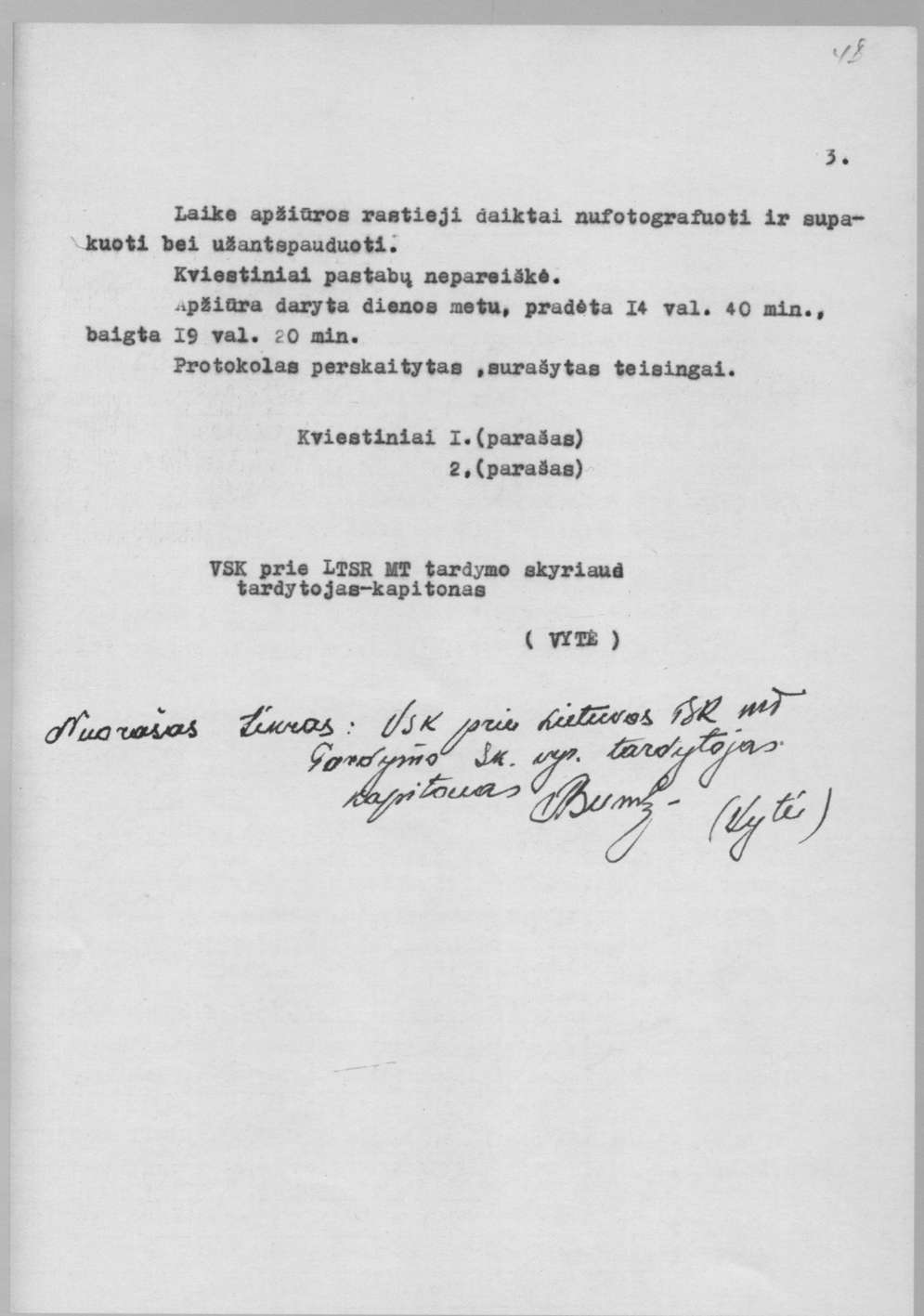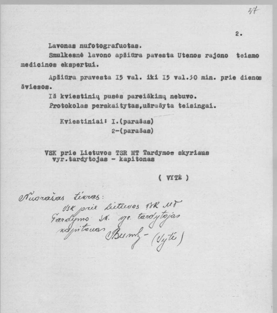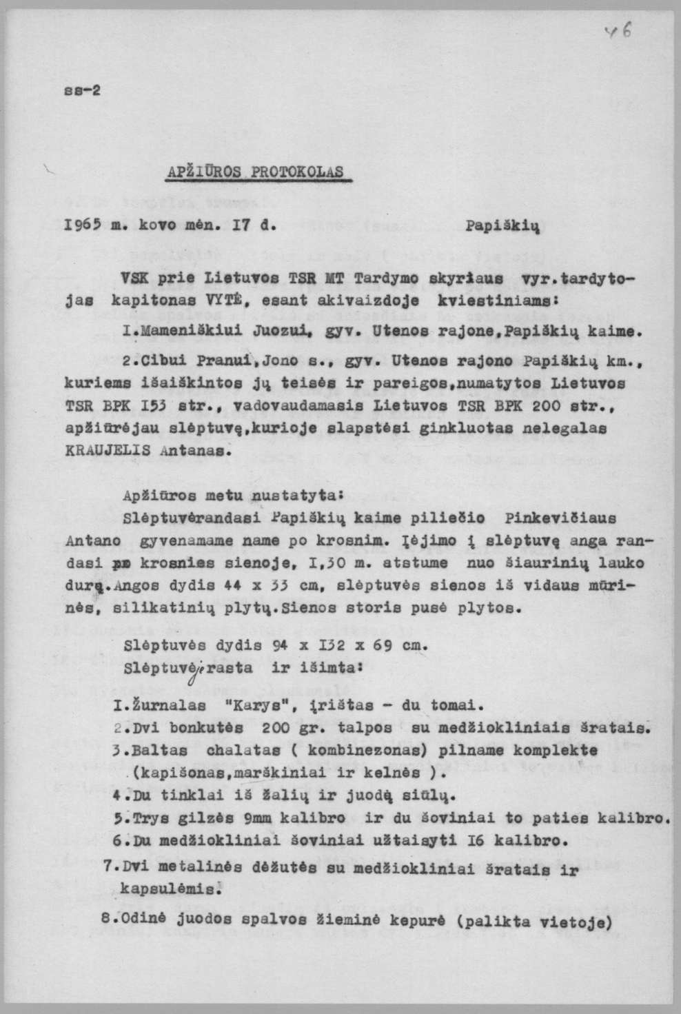 Antano Kraujelio lavono apžiūros protokolas. 1965 03 17