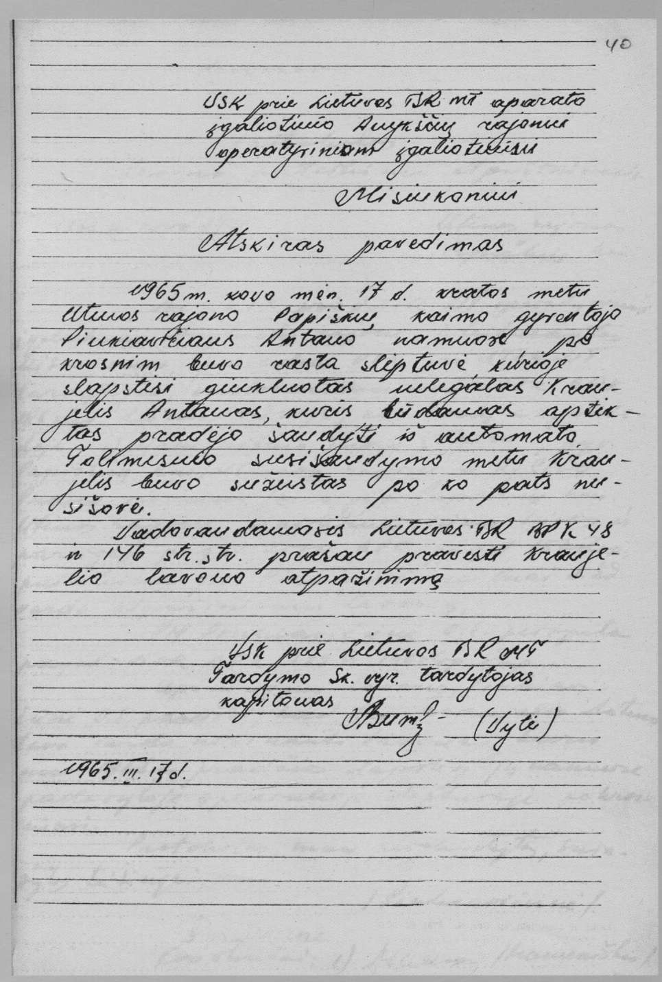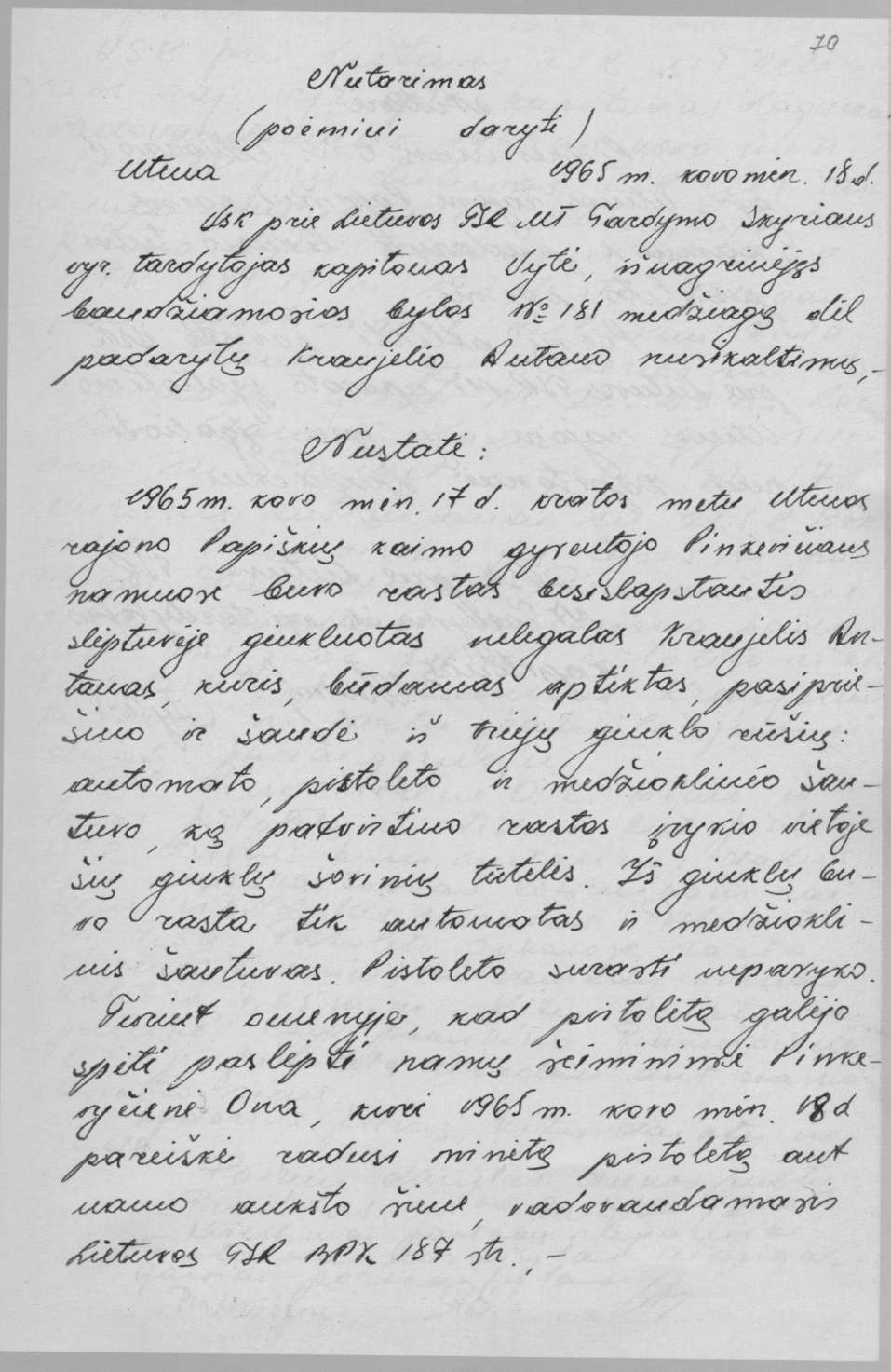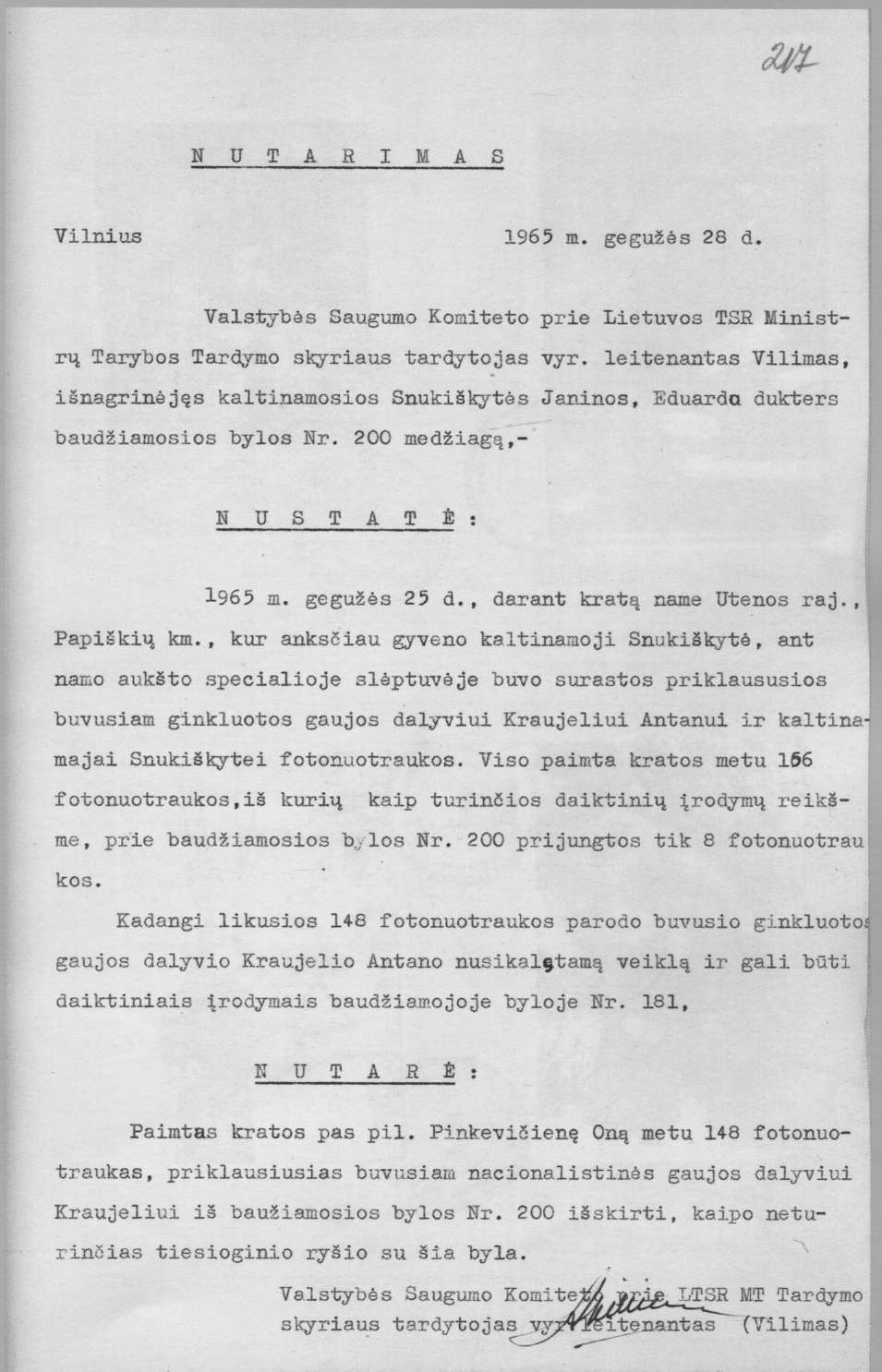 skyriaus tardytojo vyr. leitenanto Vilimo nutarimas. 1965 05 28