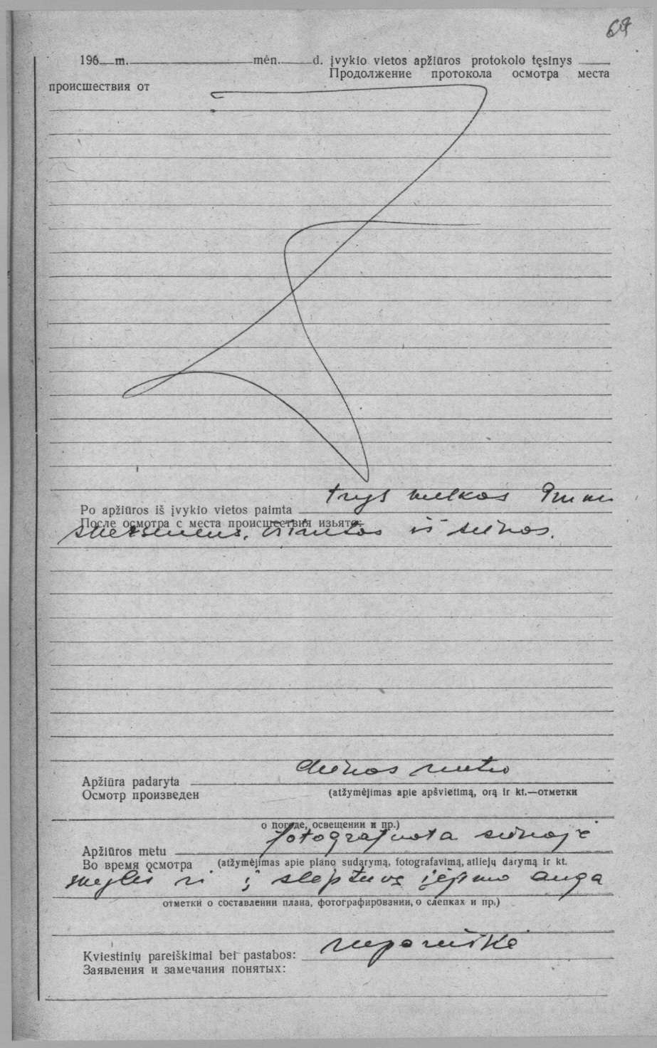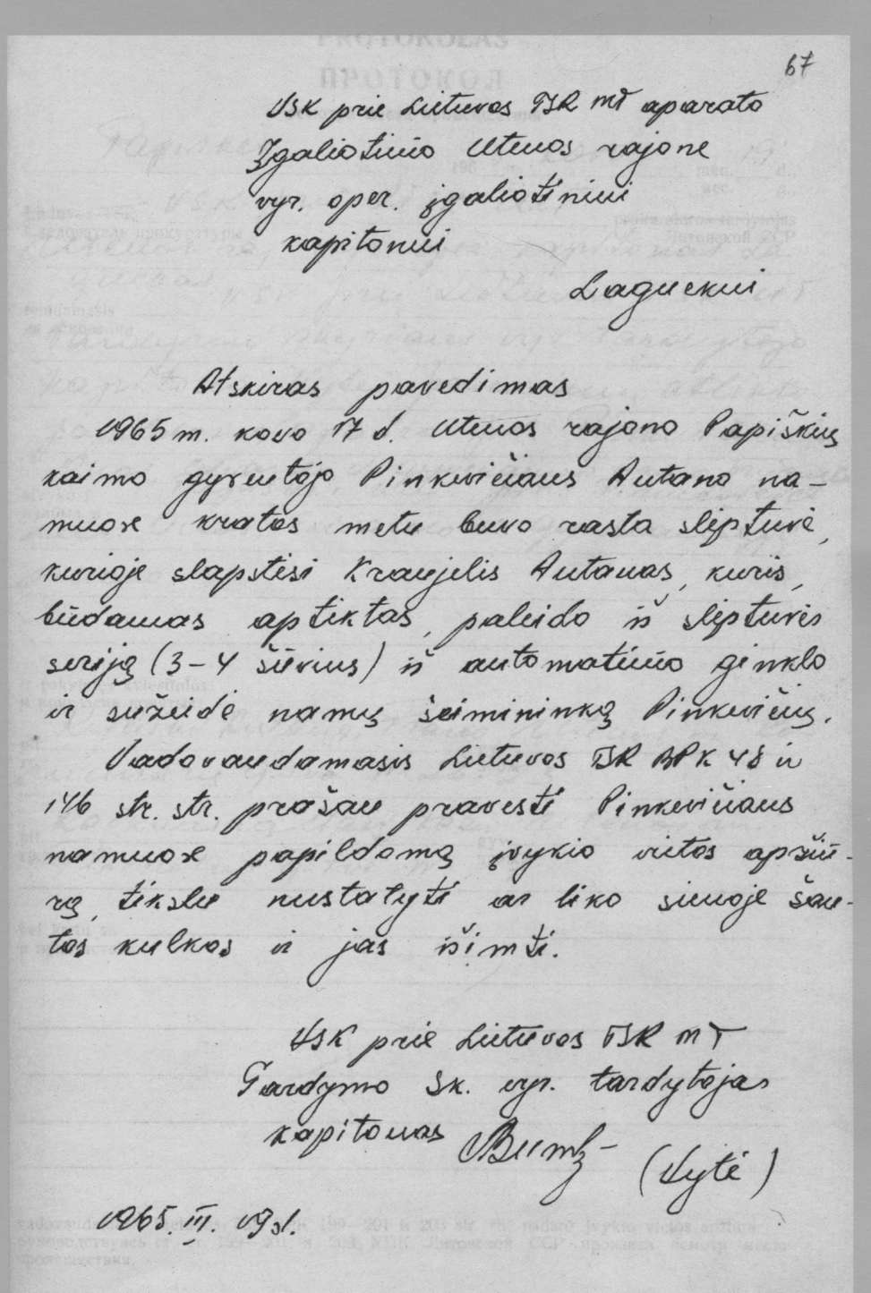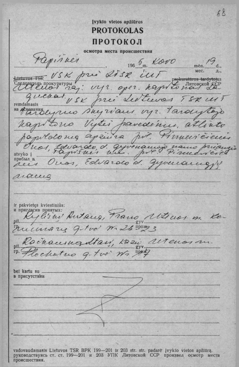 papildomą įvykio vietos apžiūrą Antano Pinkevičiaus namuose. 1965 03 19