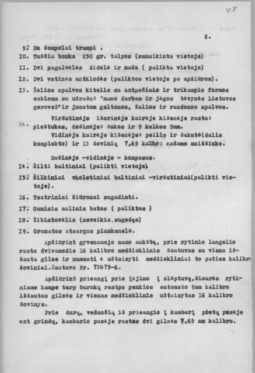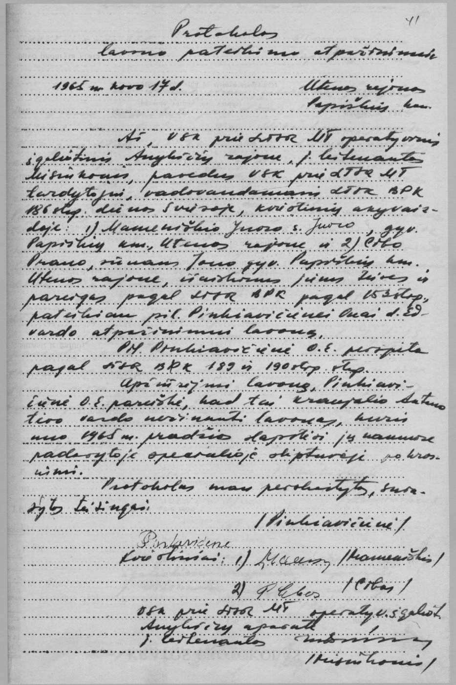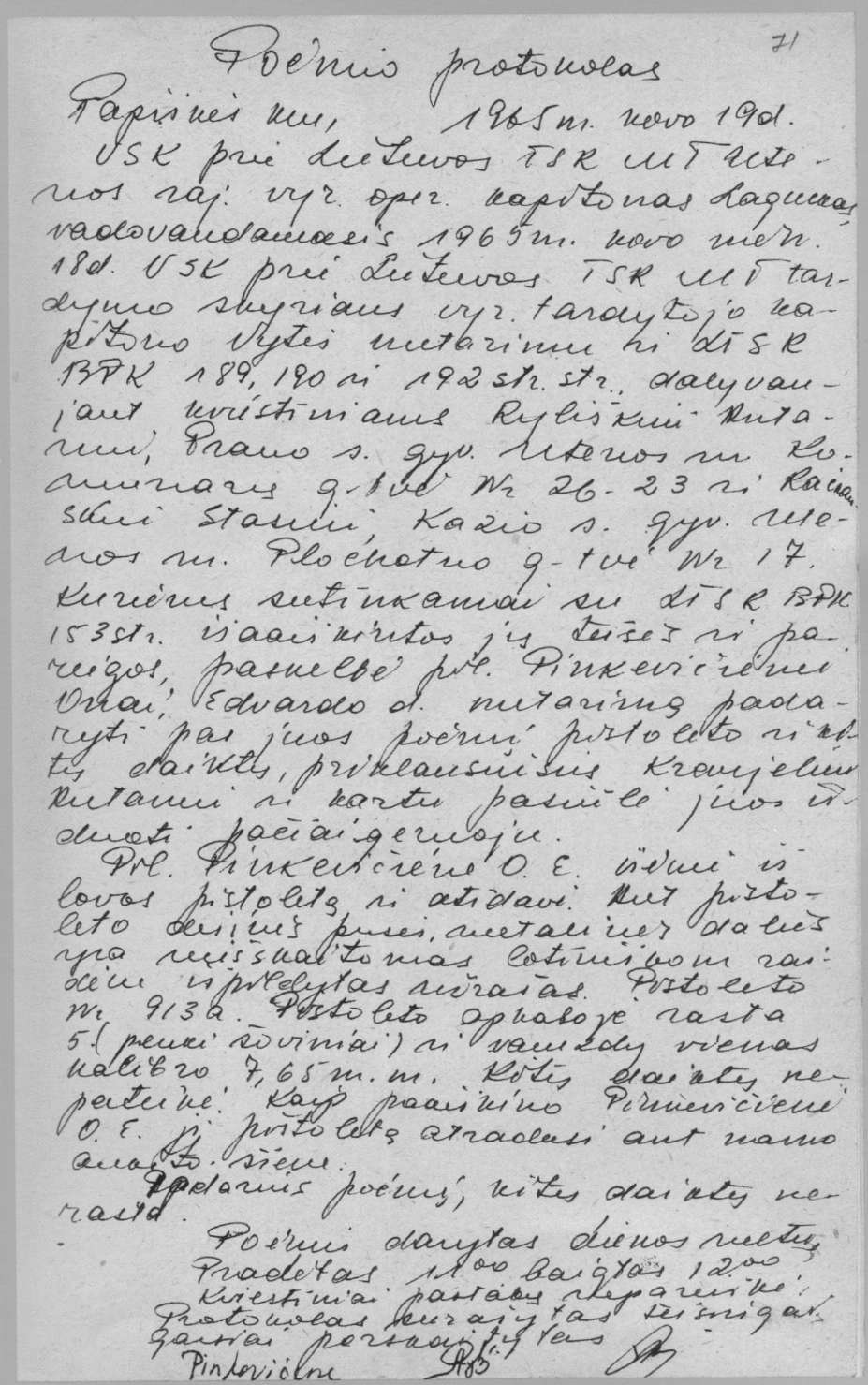 papildomą įvykio vietos apžiūrą Antano Pinkevičiaus namuose. 1965 03 19