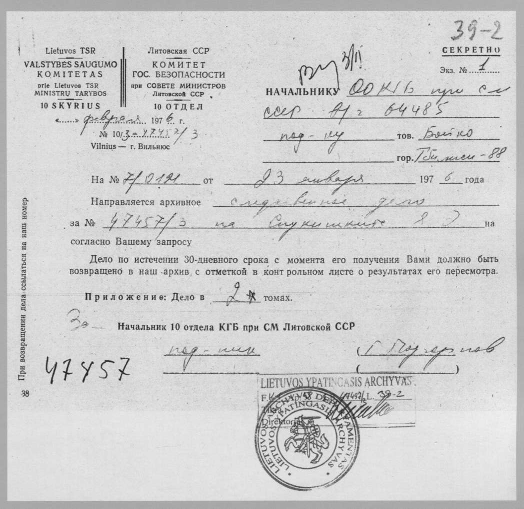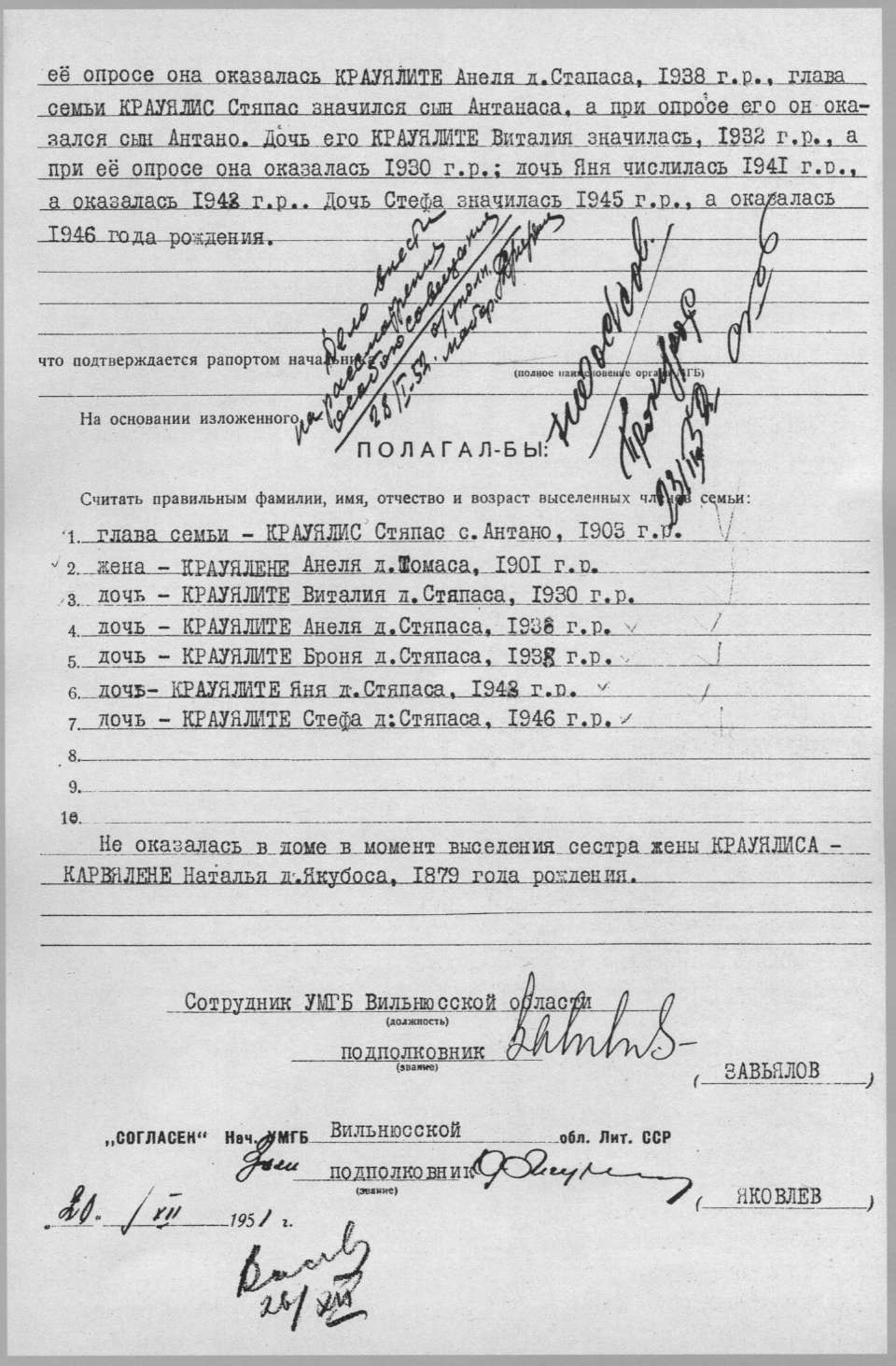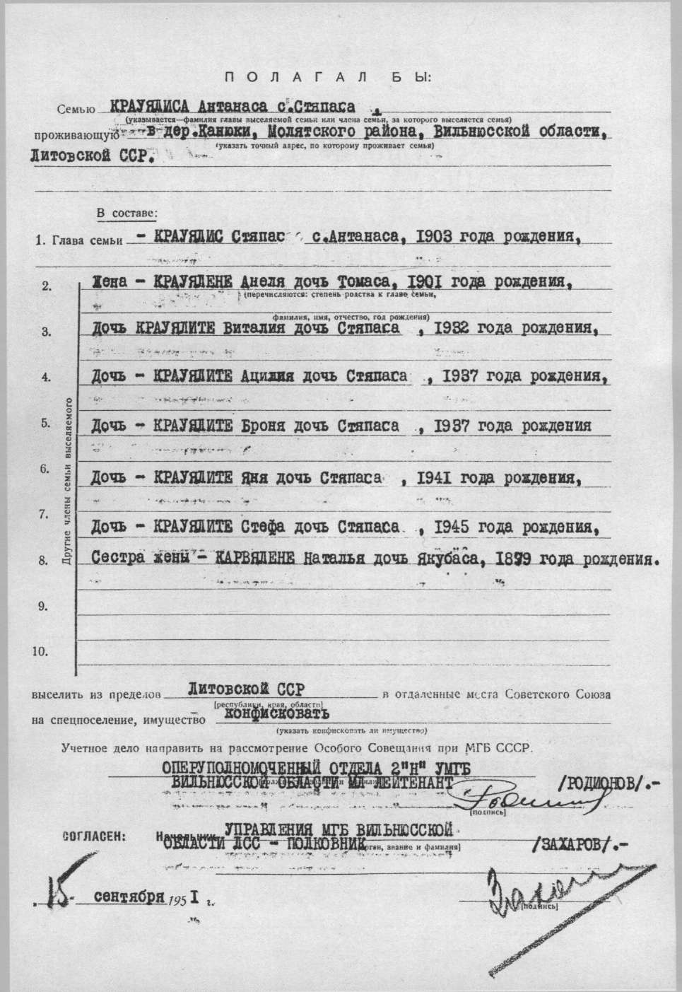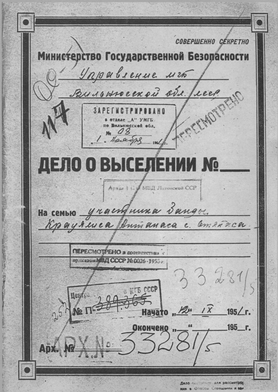 LTSR VRM pareigūno Afanasjevo sprendimas pratęsti Steponono Kraujelio šeimos