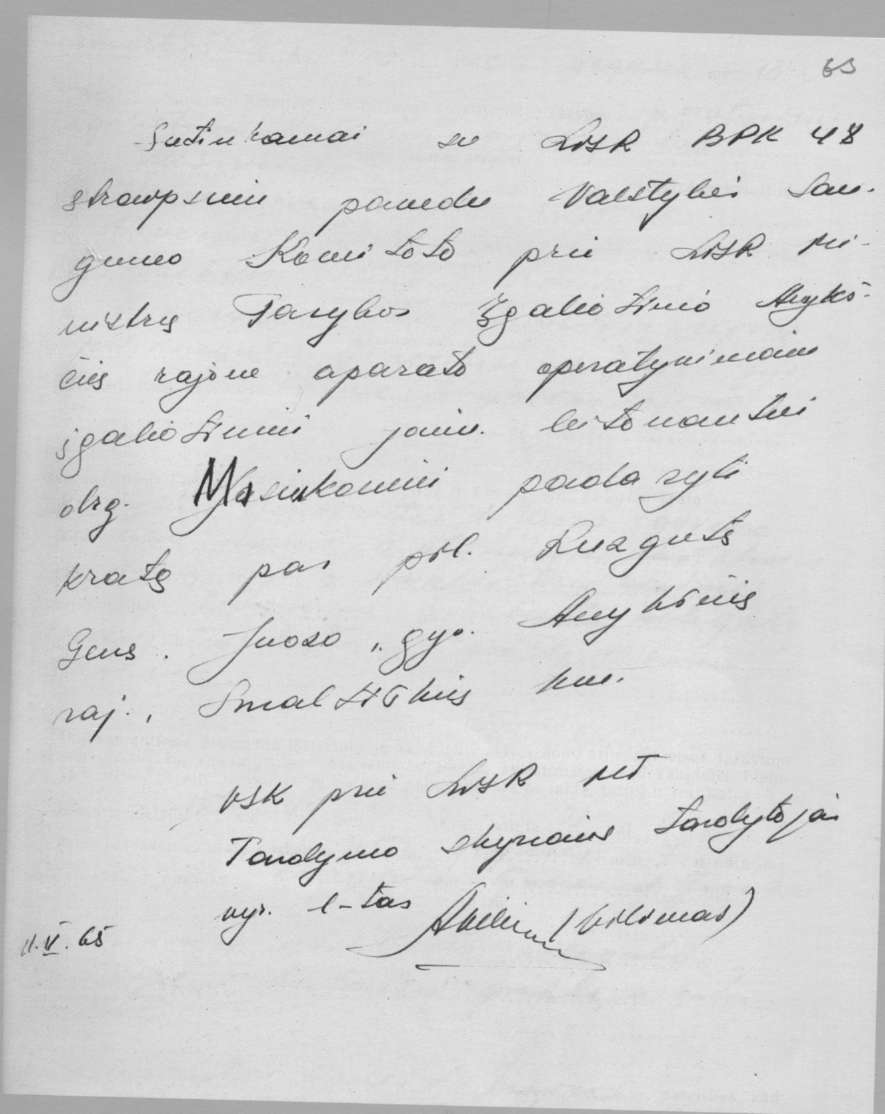 Atskiras pavedimas Marijonui Misiukoniui. 1965 03 17