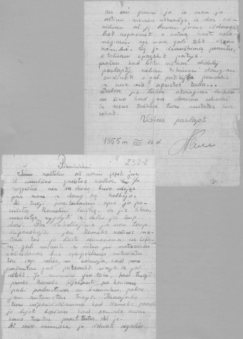 Antano Kraujelio ir Janinos Snukiškytės bylose esančių įdomesnių dokumentų kopijos ... 225