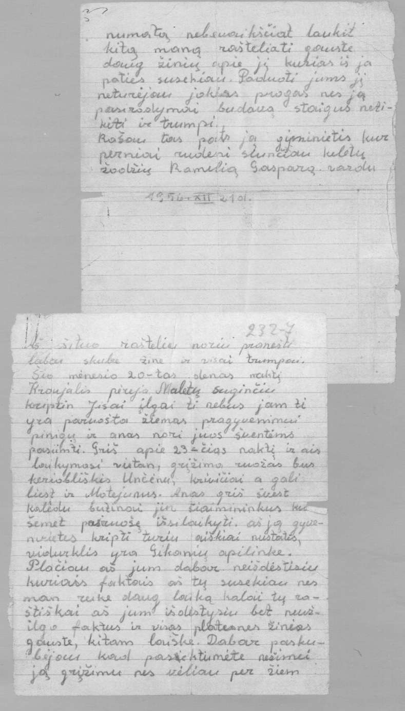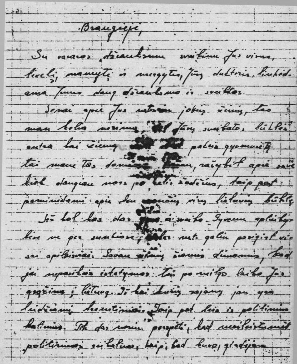 Antano Kraujelio Janinai Snukiškytei padiktuoti laiškai, klaidinantys