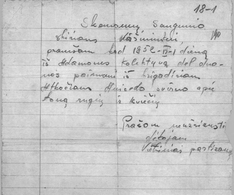 Antano Kraujelio pakvitavimas Anykščių milicijai. 1955 m.