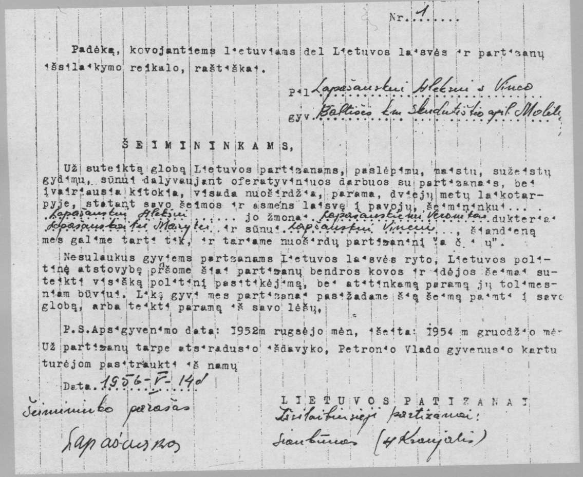 Sprendimas patikslinti Antano Kraujelio-Siaubūno tremiamos šeimos duomenis.