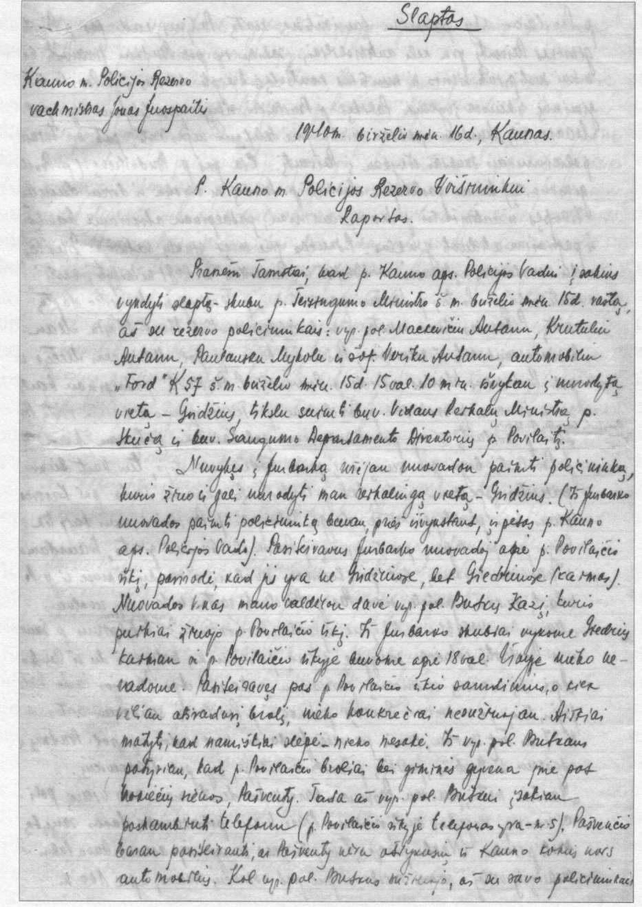 KRASLAGO PROKURORO IŠVADOS (1942 02 23)................. 215
