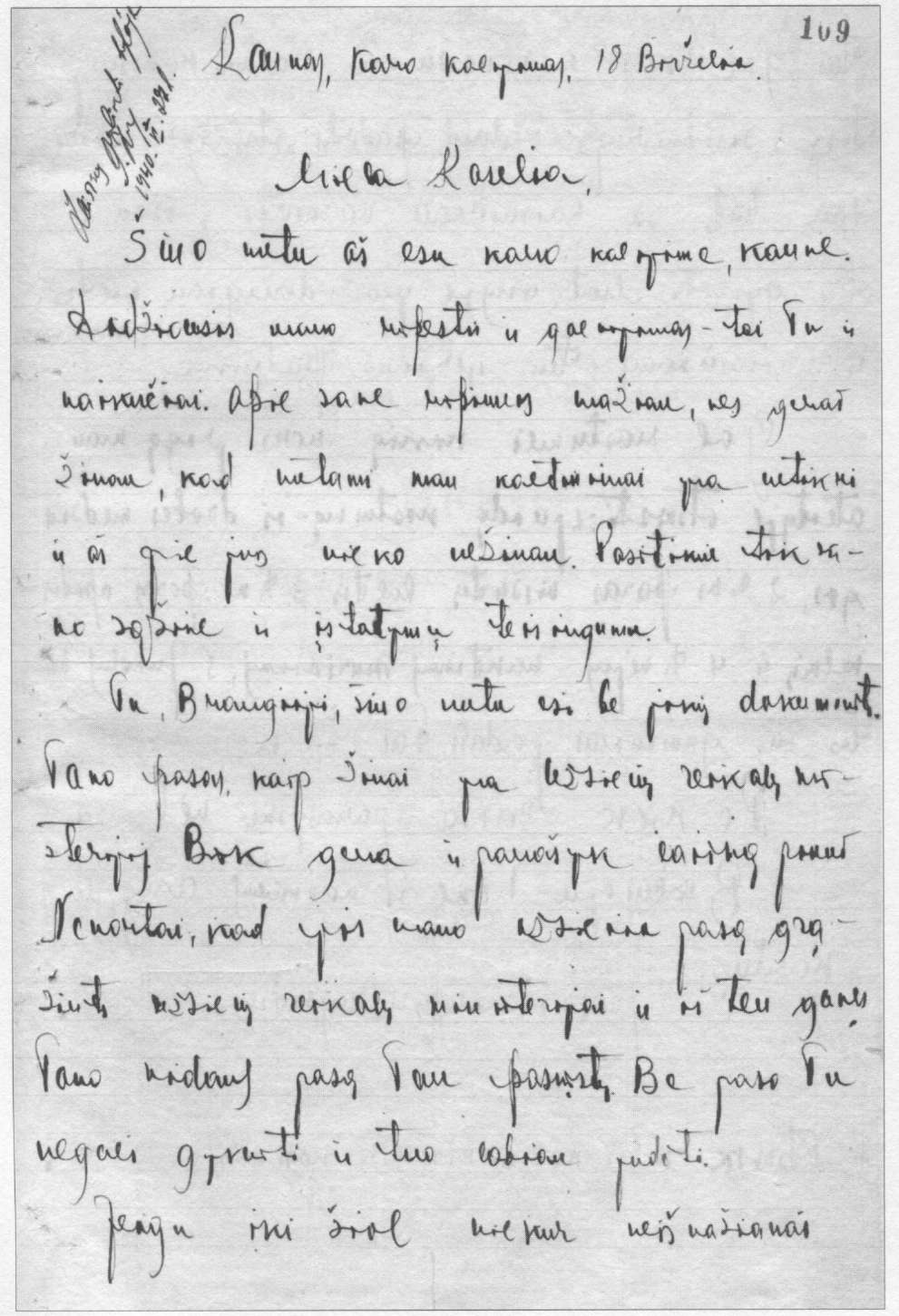 Augustino Povilaičio laiškas žmonai iš Kauno karo kalėjimo..... 100