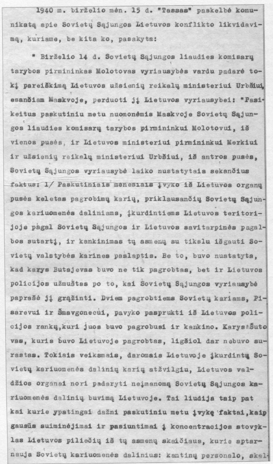 1940 m. sovietų ultimatumas Lietuvai...................................................... 14