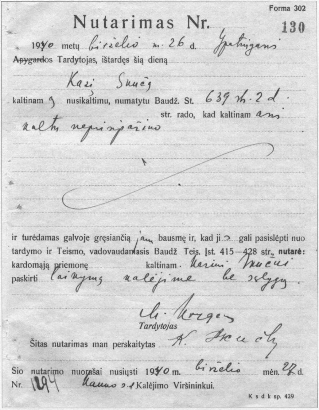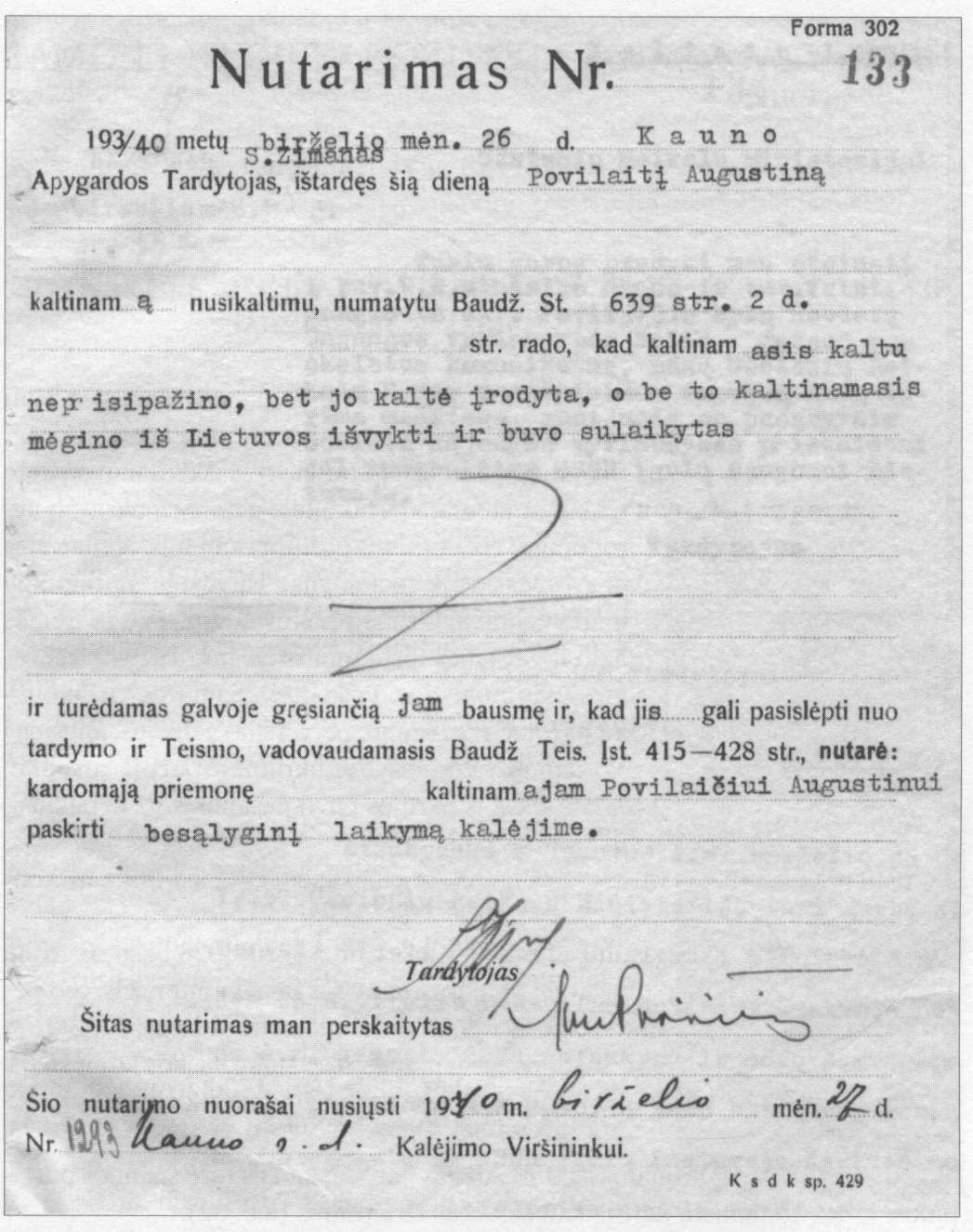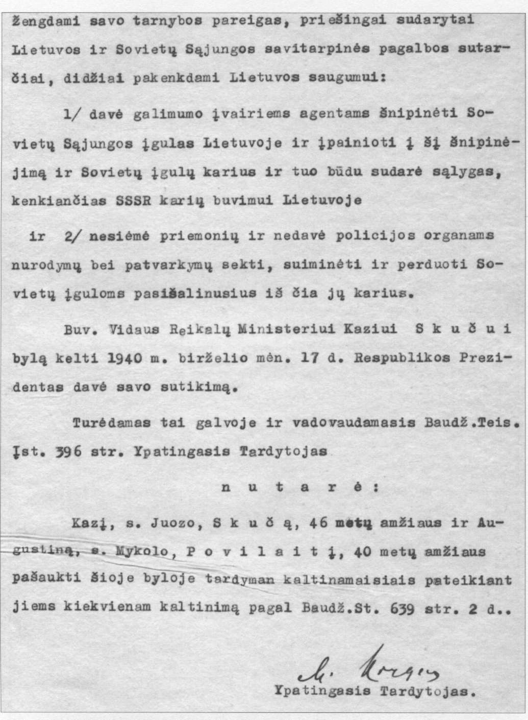 Nutarimas pateikti kaltinimą Kaziui Skučui ir Augustinui Povilaičiui.. 102