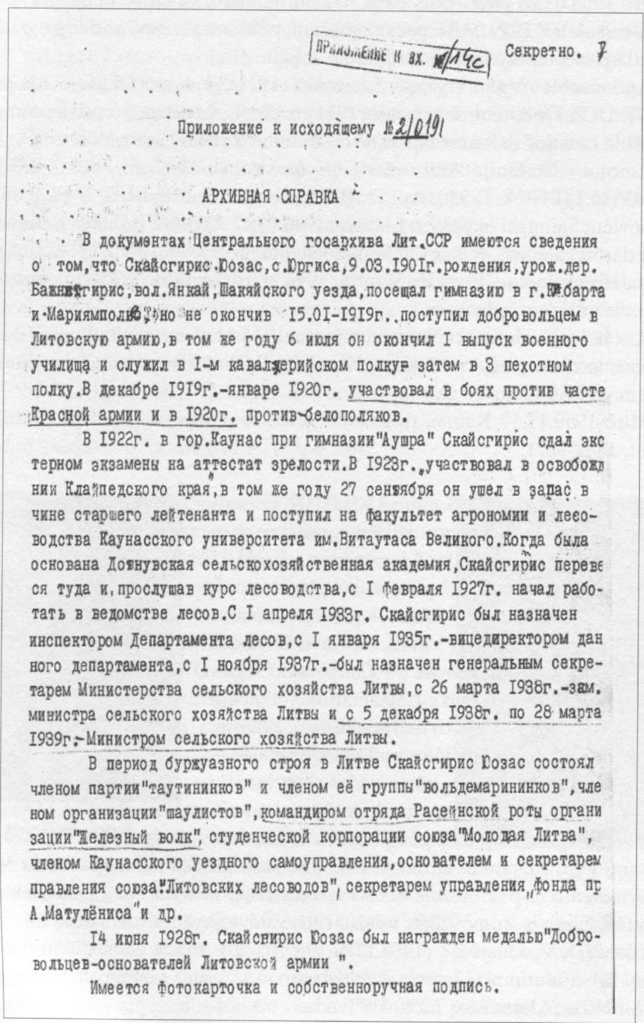 PAPILDOMA ARCHYVINĖ MEDŽIAGA APIE